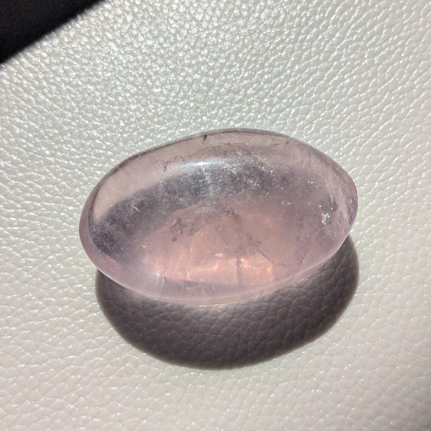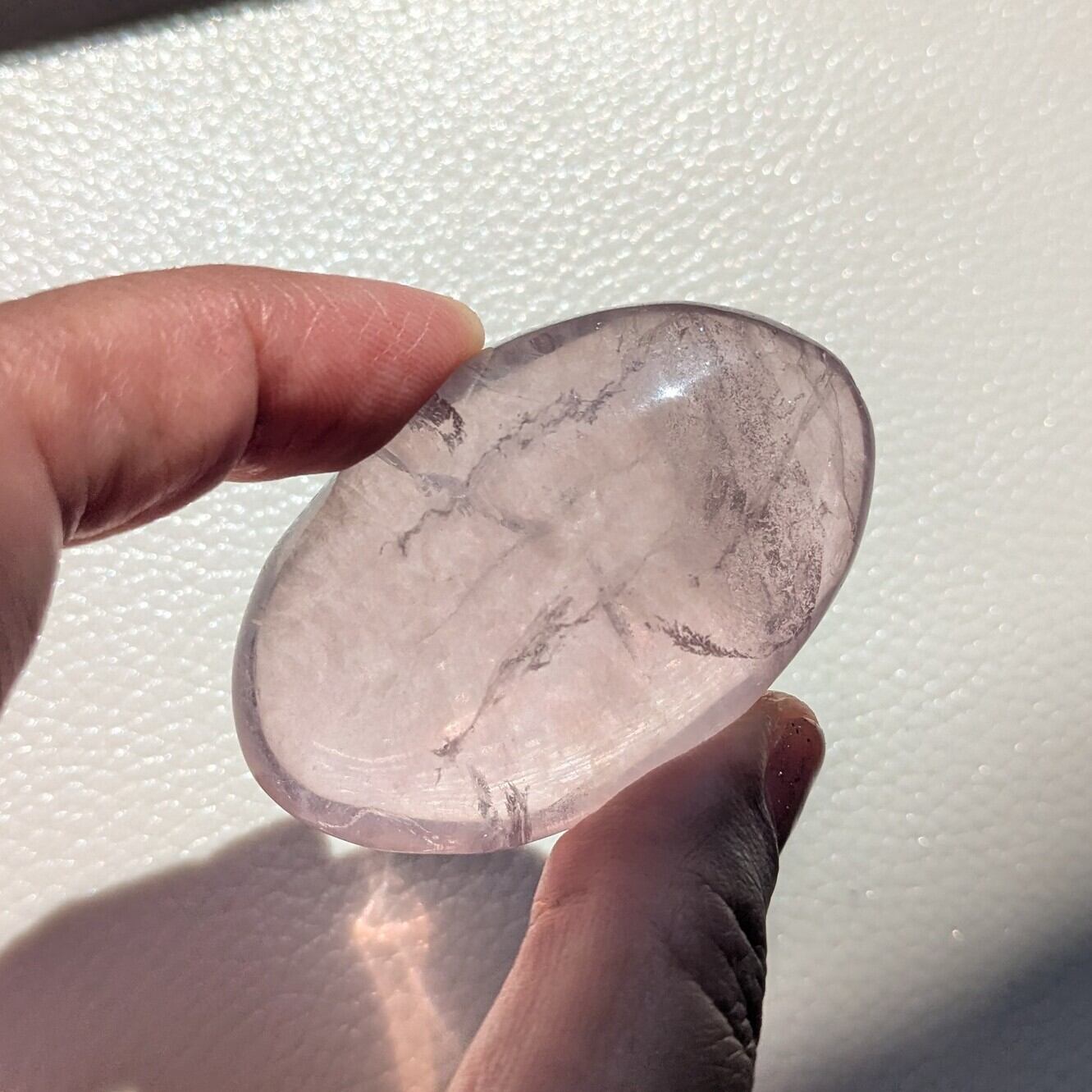 淡いパープルフローライトのパームストーン。