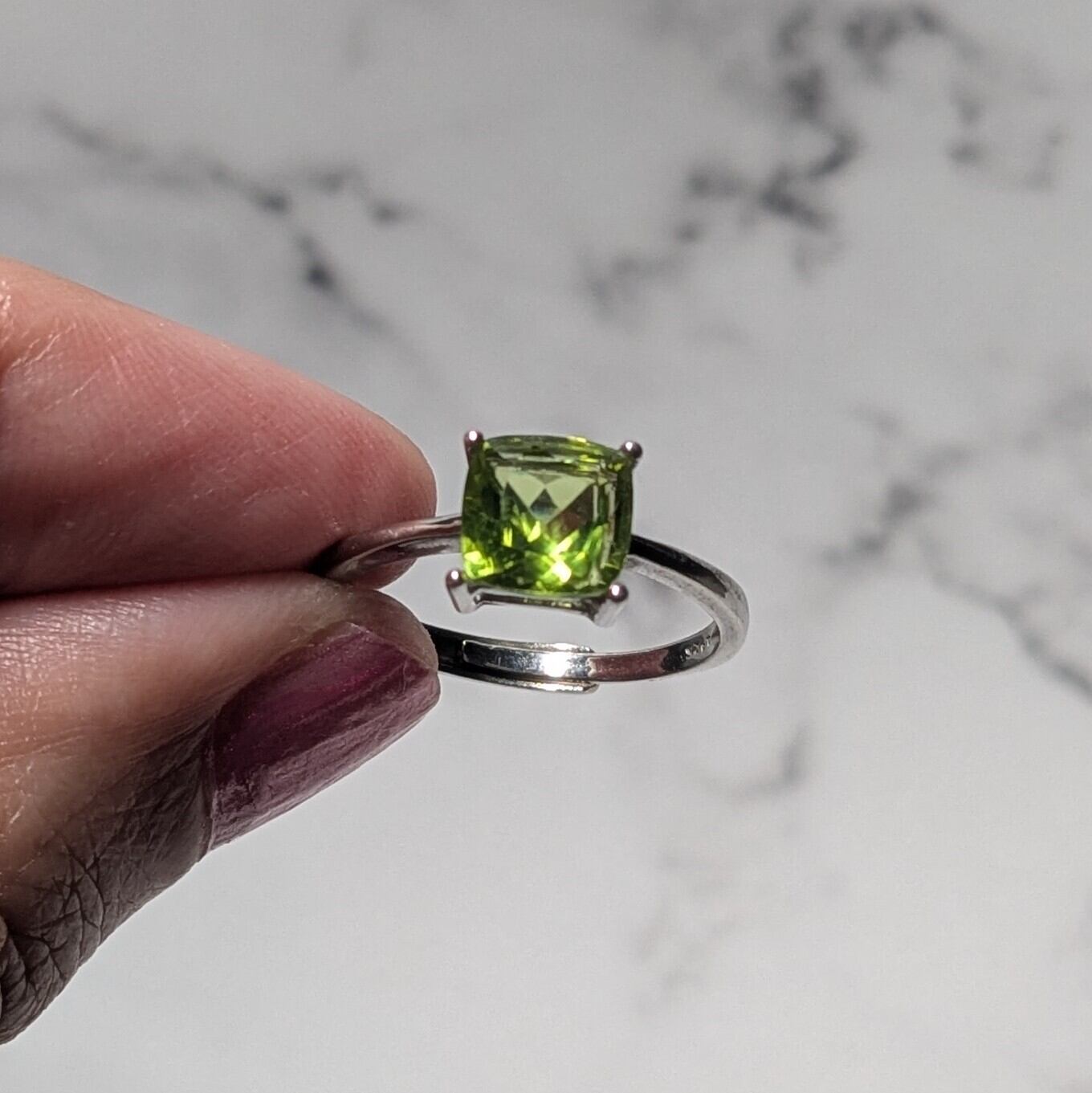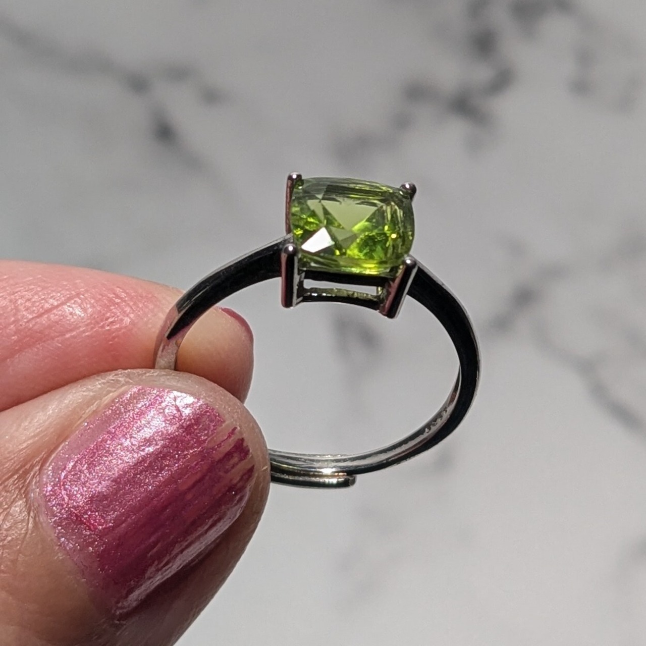 ペリドットのシンプルなリング。重ね付けにも最適です。カットも美しく凛としていてきらきらの石です。