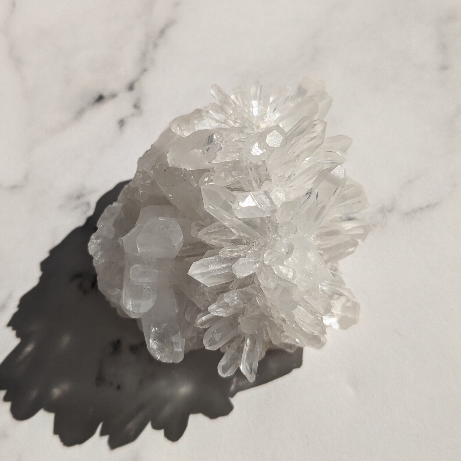 花が咲いているよように見えるクリアクォーツのミニクラスター(菊花水晶)です。手のひらサイズのまるっこいかわいい形です。ポイントがぎっちり詰まっています。